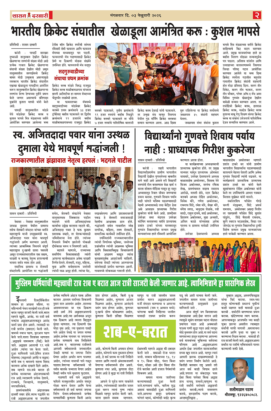 3 February Page: 2 February 03, 2026 3 February 1 2 3 4 Page 1Page 2Page 3Page 4 × 3 February SHASAN DARBAR-03_page-0001SHASAN DARBAR-03_page-0002SHASAN DARBAR-03_page-0003SHASAN DARBAR-03_page-0004 << First << 2 >> Last >> Page no 1Page no 2Page no 3Page no 4